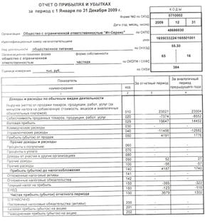 Отчет о прибылях и убытках ООО «ИТ-СЕРВИС» за 2009 год