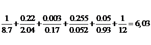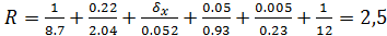 R=1/αв + R1 + R2 + R3 + R4 + R5+ 1/αн