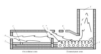 плавильной зоны расположена на своде, ближе к границе зон; горелка отстойной зоны
