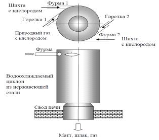 плавильными аппаратами для плавки на штейн тонкодисперсных флотационных