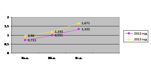 Коэффициент быстрой ликвидности в 2012 году ниже, чем в 2013 году на 0,202, и в 2013 году составил 1,197, поэтому следует отметить если коэффициенты выше нормы 0,7-1,0, то это говорит о хорошей оборачиваемости денежных средств.