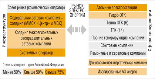 Генерирующие, сбытовые и ремонтные компании в перспективе станут преимущественно частными и будут конкурировать друг с другом. В естественно-монопольных сферах, напротив, происходит усиление государственного контроля.