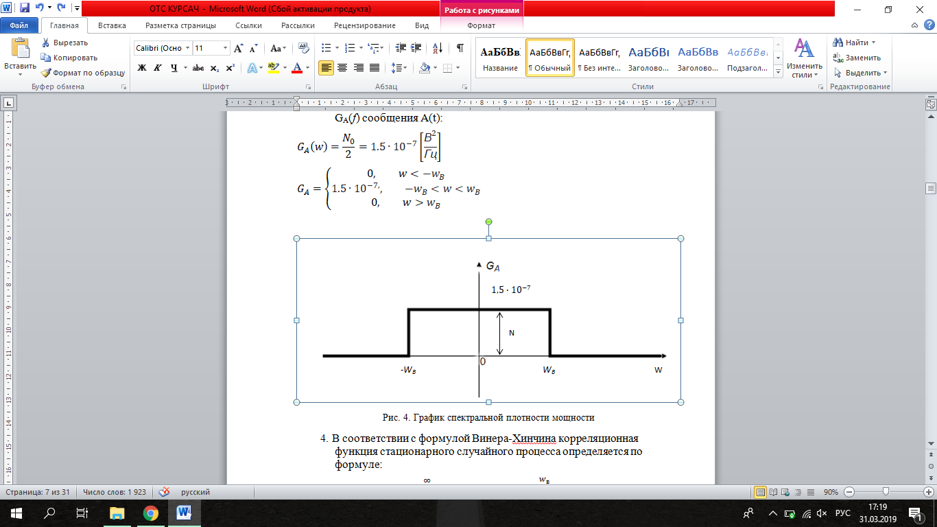Аналитическое выражение для спектральной плотности мощности GA(f) сообщения A(t):