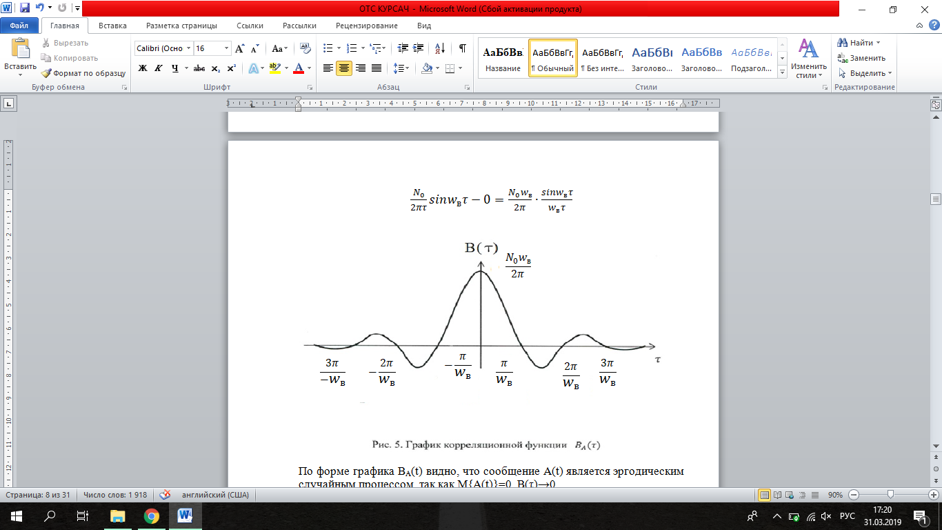 По форме графика BA(t) видно, что сообщение A(t) является эргодическим случайным процессом.