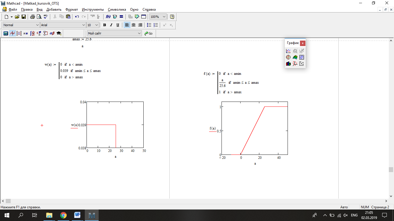 Так как W(a) вне интервала от amin до amax равна 0, то получим:
