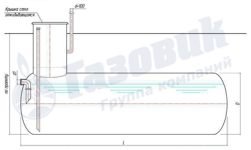 Чаще всего это цилиндрические герметичные резервуары из металла или стеклопластика с ребрами жесткости, которые в большинстве случаев устанавливаются в горизонтальном положении, для сообщения с ними прокладывается трубопровод.