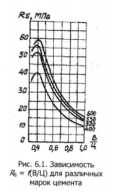 Для обычных бетонов (ниже М500) формула Боломея-Скрамтаева имеет вид Rб = А2Rц(Ц/В – 0,5) (Ц/В = 1,4...2,5).