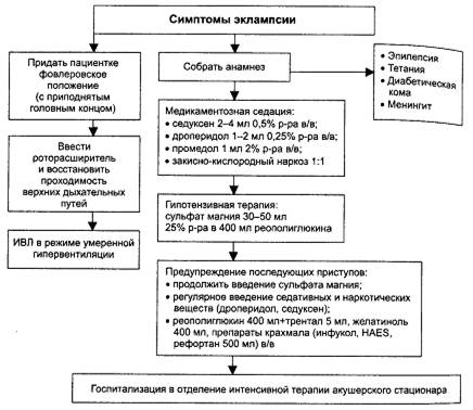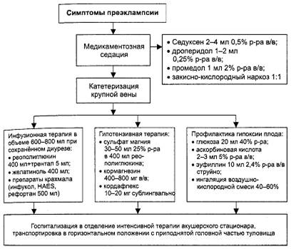Родоразрешение при любом исходе в течение 3 суток, а при тяжелой преэклампсии в течение 2-3 ч, профилактика приступов эклампсии, восстановление функции ССС, ЦНС, почек.