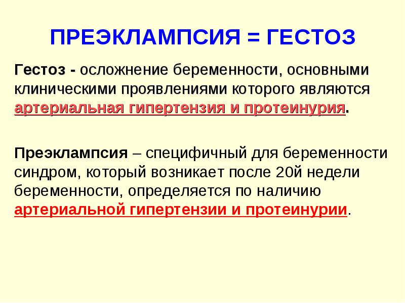 САД в покое более 160/110 мм рт ст при двух измерениях, олигурия менее 400 мл, неврологические или зрительные нарушения, отек легких, цианоз, боль в правом подреберье, эпигастрии, дисфункция печени неясного генеза, тромбоцитопения.