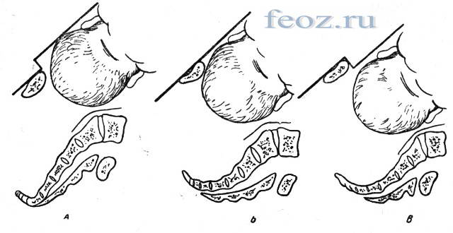 Когда головка плода находится кзади от плоскости лона (в норме).