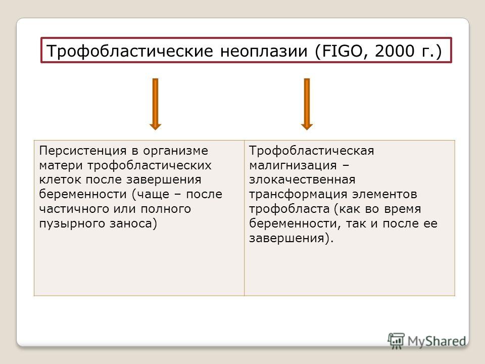 В норме концентрация ХГЧ в плазме крови нормализуется через 4–8 нед после экстракции пузырного заноса. Повышенная концентрация ХГЧ после 8 нед может свидетельствовать о развитии злокачественного образования.