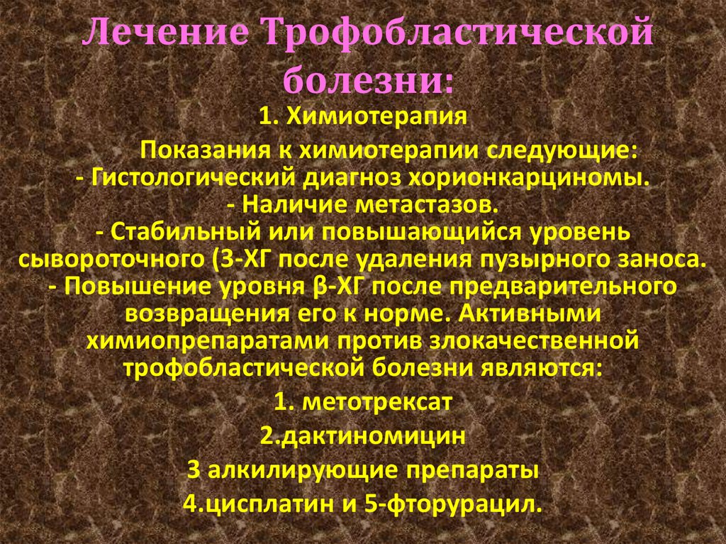 - переход ПЗ в хорионэпителиому (злокач. новообразование хориона), метастазирование опухоли,