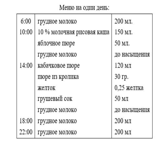 2. Режим кормления – 5 раз через 4 часа с 8 часовым ночным перерывом.