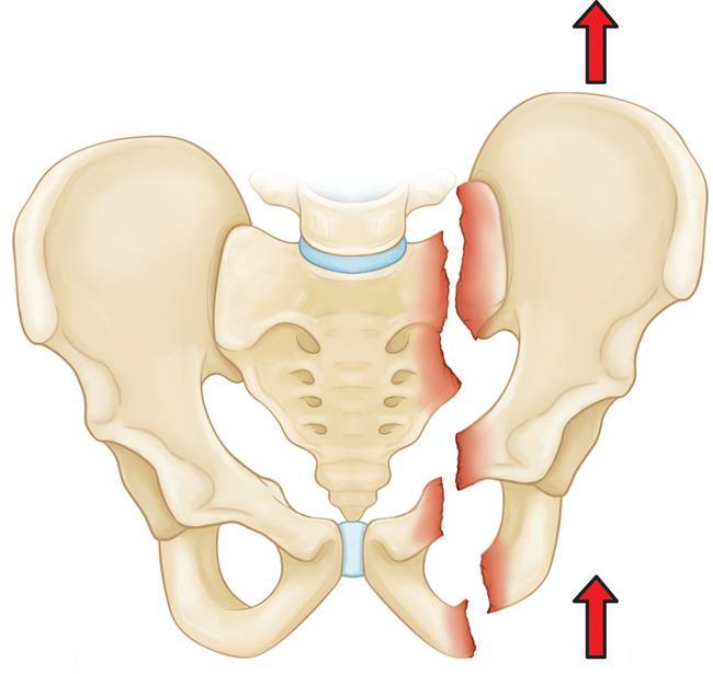 Если у больного, имеющего такой перелом, нет смещения отломков, то всё равно не следует обольщаться, оно через несколько дней произойдёт - половина таза вместе с нижней конечностью сместится кверху.