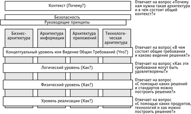 Эти области последовательно покрывают архитектурные аспекты, отталкиваясь от потребностей функционирования организации (бизнеса) и обеспечивая весь набор технологий для реализации конкретного решения бизнес-проблемы