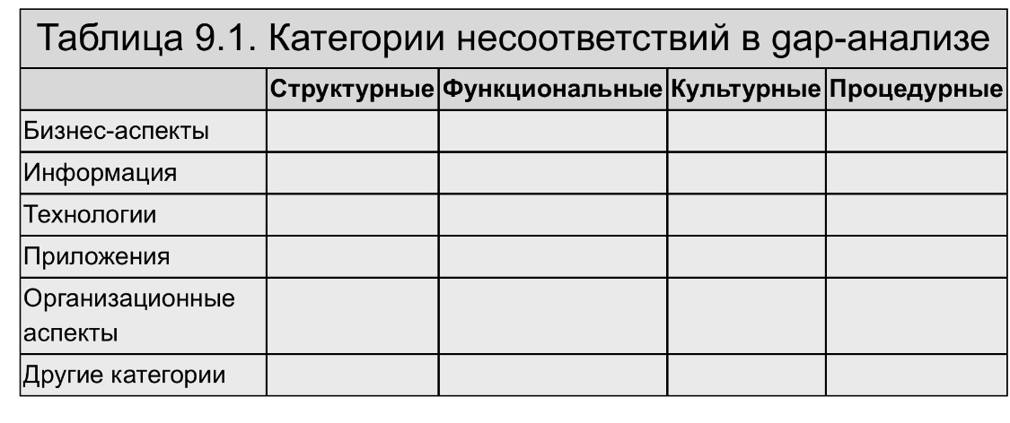 Gap-анализ — это способ идентификации и анализа несоответствий между существующим и желаемым состоянием архитектуры предприятия и отдельными его доменами