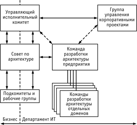 Точное название подразделений и количество людей в них не несут принципиального значения. На самом деле, большинство департаментов ИТ уже имеют многие из этих организационных структур в той или иной форме. Все эти организационные структуры вовлечены как в процессы разработки архитектуры, так и в процессы контроля и надзора.