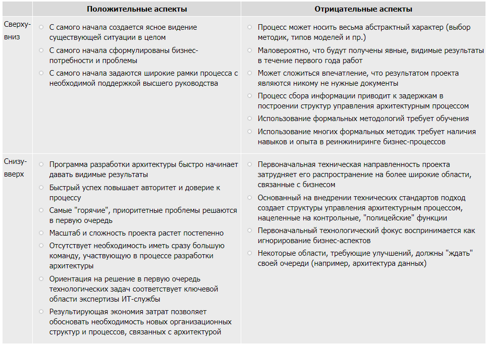 В общем виде можно сказать, что существуют два принципиально различных подхода в разработке архитектуры предприятия: