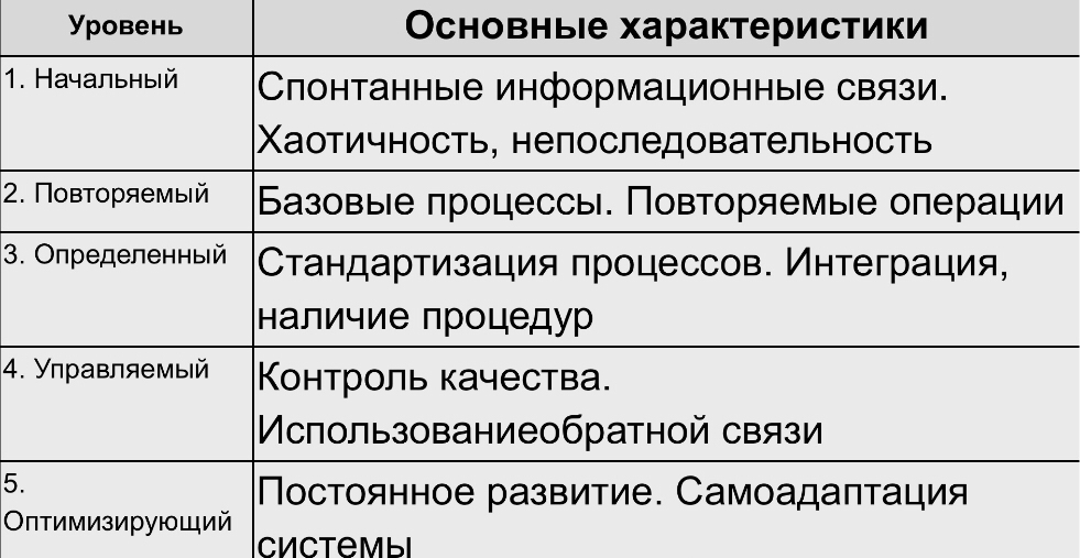 уровней организационной зрелости.