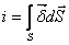Ток сквозь поверхность S равен потоку вектора плотности тока сквозь ту же поверхность. Плотность тока измеряется в амперах, деленных на квадратные метры (А/м2).