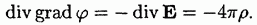 Уравнение (10.2) устанавливает связь между потенциалом электростатического поля и напряженностью этого поля. Из этого уравнения можно получить соотношение между потенциалом и плотностью заряда. Для этого нужно образовать дивергенцию обеих частей этого уравнения и воспользоваться затем формулой (6.5):