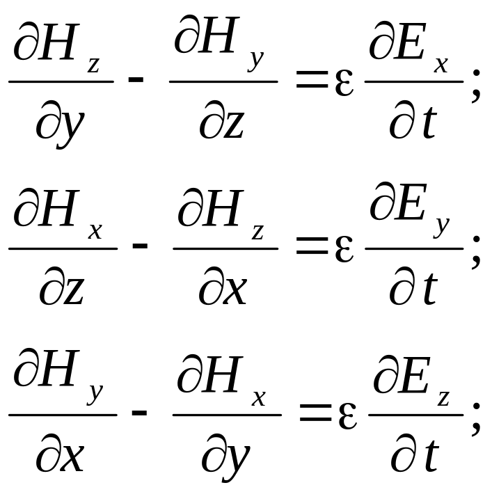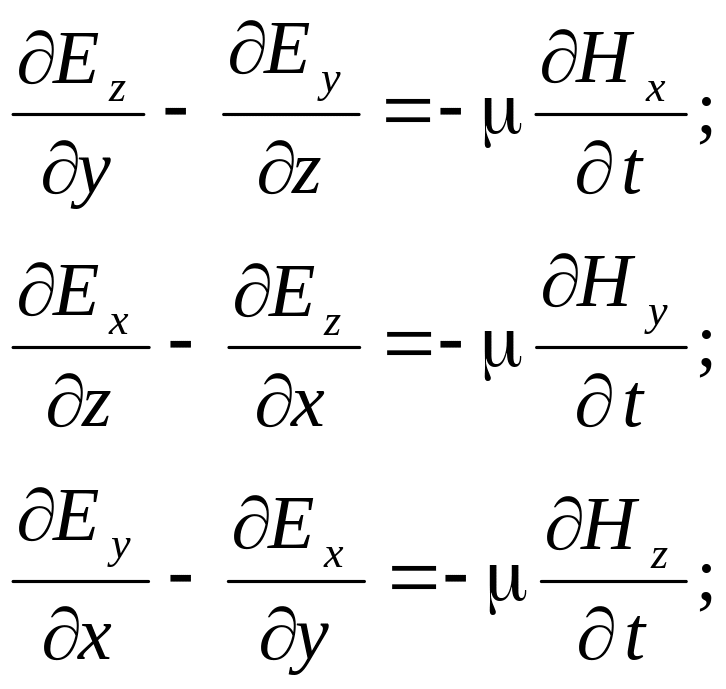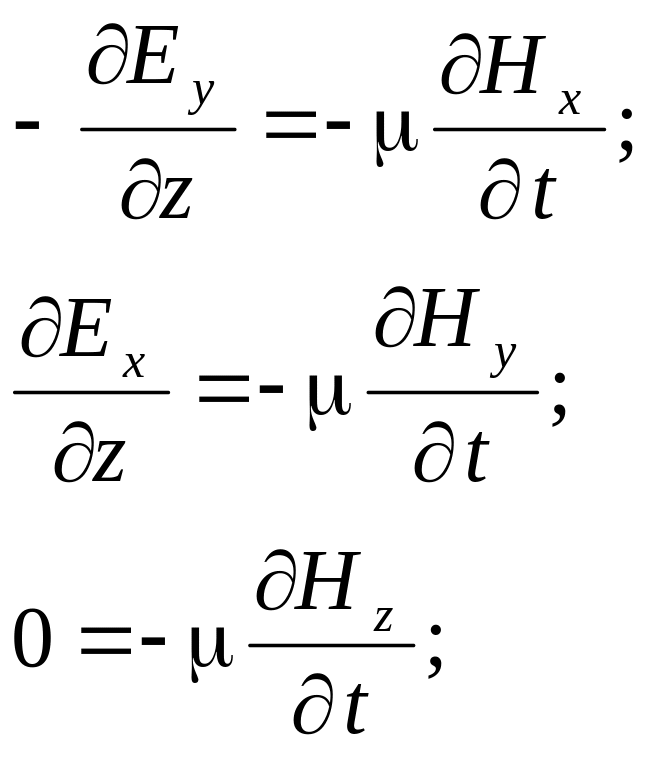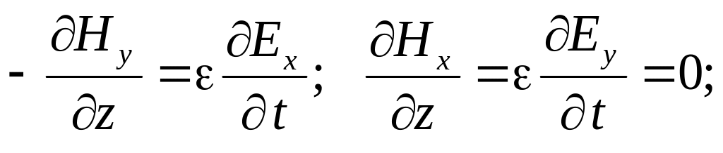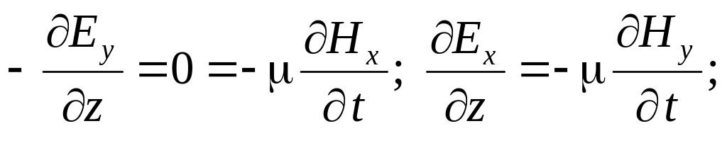 В плоской электромагнитной волне производные от любых проекций векторов поля по координатам x и y равны нулю, поэтому система уравнений упрощается и принимает вид: