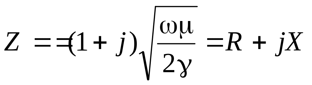 Это сопротивление имеет вещественную и мнимую часть, что свидетельствует о наличии тепловых потерь в проводнике и сдвиге по фазе ( = + /4), между волнами электрической и магнитной напряженности во временной области. Волновое сопротивление можно представить и в алгебраической форме:
