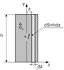 Постоянная интегрирования C пропорциональна заданному в шине току I.Выделим некоторый участок dS=hdz(рис.32). Тогда