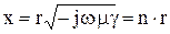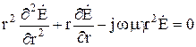 В проводящей среде вектор электрической напряженности удовлетворяет уравнению Гельмгольца, которое в цилиндрических координатах для одномерного поля имеет вид