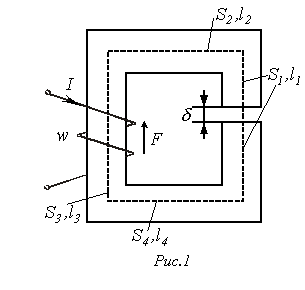 где: L1 и L2 – длины ферромагнитных участков цепи [м]. δ – ширина воздушного зазора, [м].