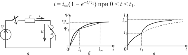 Особенности применения метода рассмотрим на примере расчета тока при подключении нелинейной индуктивности к источнику постоянного напряжения (рис. 7.2, а).
