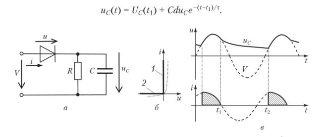 При закрытом состоянии диода (и < 0) имеем i = 0 и происходит разряд конденсатора, описываемый выражением