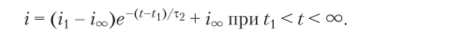 На втором участке i<i<< i=""> г'оо решение i = А^е~^~1^^2 + г» с постоянной времени Т2 = L^/r должно удовлетворять условию коммутации i{t) = i, из которого следует А2 = i- 4>. Подстановка дает для второго участка результат</i<<>