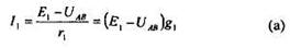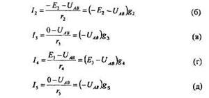 Определив узловое напряжение UAB по формуле (1.24), нетрудно найти значения токов в отдельных ветвях схемы по формулам (а) -(д).