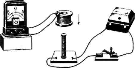 Итак, первоначально была открыта индукция в неподвижных друг относительно друга проводниках при замыкании и размыкании цепи. Затем, ясно понимая, что сближение или удаление проводников с током должно приводить к тому же результату, что и замыкание и размыкание цепи, Фарадей с помощью опытов доказал, что ток возникает при перемещении катушек относительно друг друга (рис. 5.1). Знакомый с трудами Ампера, Фарадей понимал, что магнит — это совокупность маленьких токов, циркулирующих в молекулах. 17 октября, как зарегистрировано в его лабораторном журнале, был обнаружен индукционный ток в катушке во время вдвигания (или выдвигания) магнита (рис. 5.2). В течение одного месяца Фарадей опытным путем открыл все существенные особенности явления электромагнитной индукции. Оставалось только придать закону строгую количественную форму и полностью вскрыть физическую природу явления.
