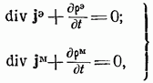 где — объемная плотность электрического заряда и — объемная плотность магнитного заряда, то из уравнений (1-1) из-за тождества ( -любой вектор) вытекают еще два уравнения: