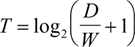 где T — среднее время, затрачиваемое на совершение действия, a — время запуска/остановки устройства, b — величина, зависящая от типичной скорости устройства, D — дистанция от точки старта до центра объекта, W — ширина объекта, измеренная вдоль оси движения.