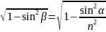 sinα/sinβ=n/1→sinβ=sinα/n