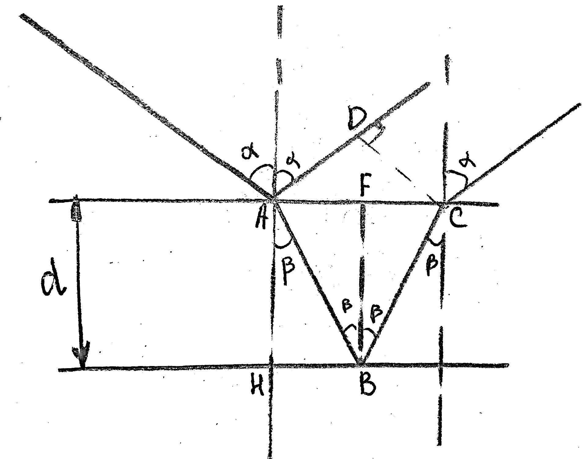 tgβ=HB/d→HB=dtgβ=AF