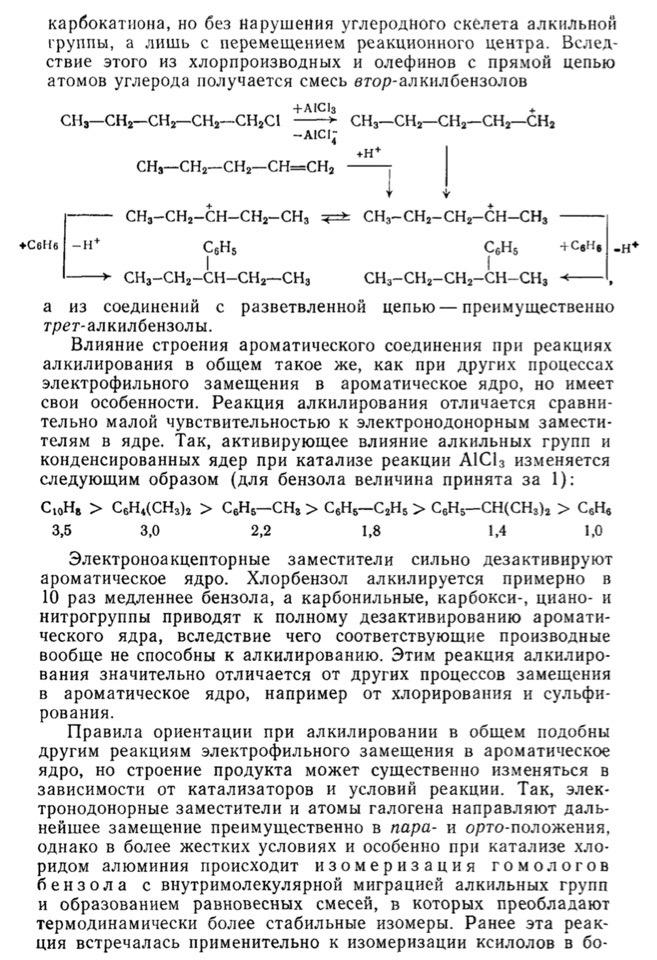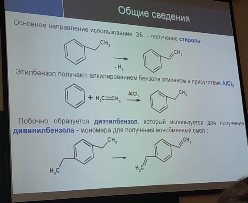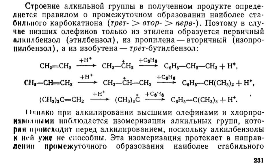Технический бензол или другой ароматический углеводород, фракции низших олефинов. Хлорид алюминия в виде жидкого каталитического комплекса.