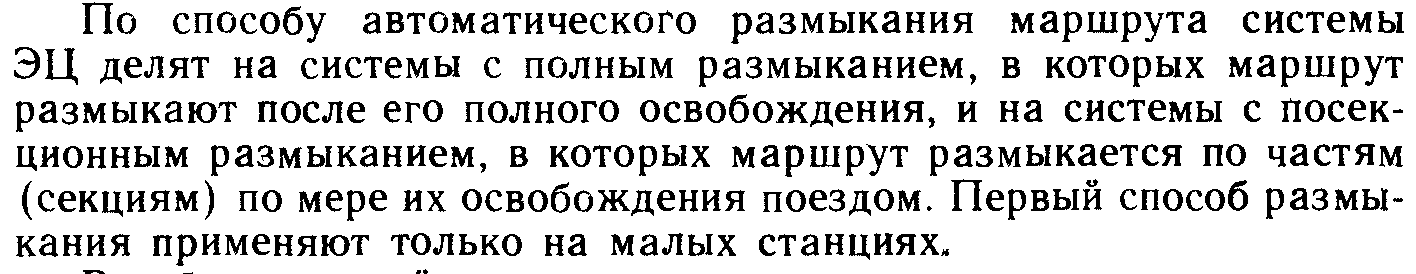 По способу задания маршрута ЭЦ подразделяют на маршрутные (маршрут задается ДСП нажатием кнопок начала и конца маршрута, перевод стрелок осущ-ся автоматически) и с индивидуальным переводом стрелок (ДСП уст-ет все стрелки по маршруту, и открывает светофор).