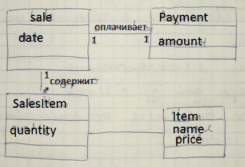 Пример с Sale, SalesLineItem и ProductSpecification. Поскольку Sale агрегирует SalesLineItem, то должна содержать метод makeLineItem.