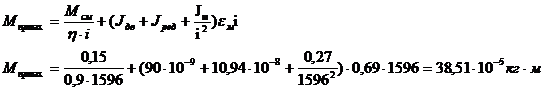 характеристики двигателя, приведенный к валу механизма: