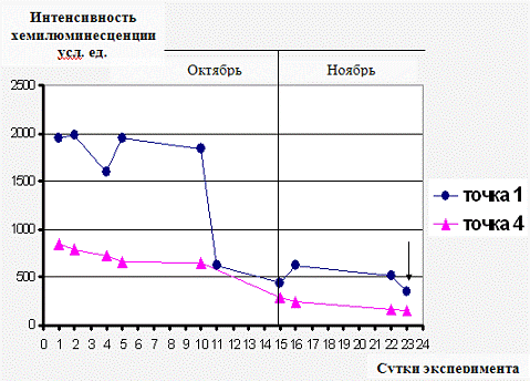 изучении динамики содержания органических соединений в период ледостава на