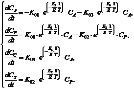 Даний математичний опис відображає лише самі хімічні перетворення, що відбуваються в реакторі, без урахування теплового ефекту реакцій і конструктивних особливостей реактора.