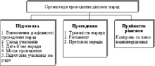 Після того, як прийнято рішення про необхідність проведення наради, визначають порядок денний і склад її учасників.