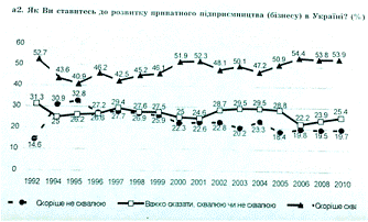 підприємництва в Україні, менше 30% населення відносилися негативно до цього