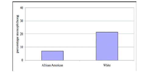 Таким чином, очевидним стає той факт, що з погляду етнічної варіативності мовлення мешканців м. Пітсбург монофтонгізація дифтонга [aw] є більш характерною для білих мовців ніж для афроамериканців.