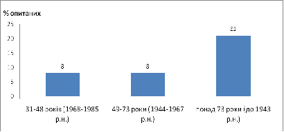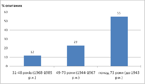 групі 49-73 роки вона складає 15%. Найменшу різницю у показниках