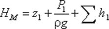 Записав уравнение Бернулли для сечения М-М и конечного сечения, например первого трубопровода, получим (пренебрегая разностью скоростных высот):